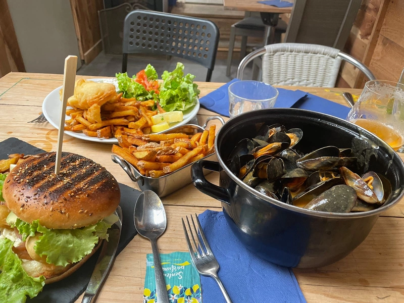 Planches apéro, nems, éperlans frits, moules frites, fish & chip's, burger boeuf/poisson…