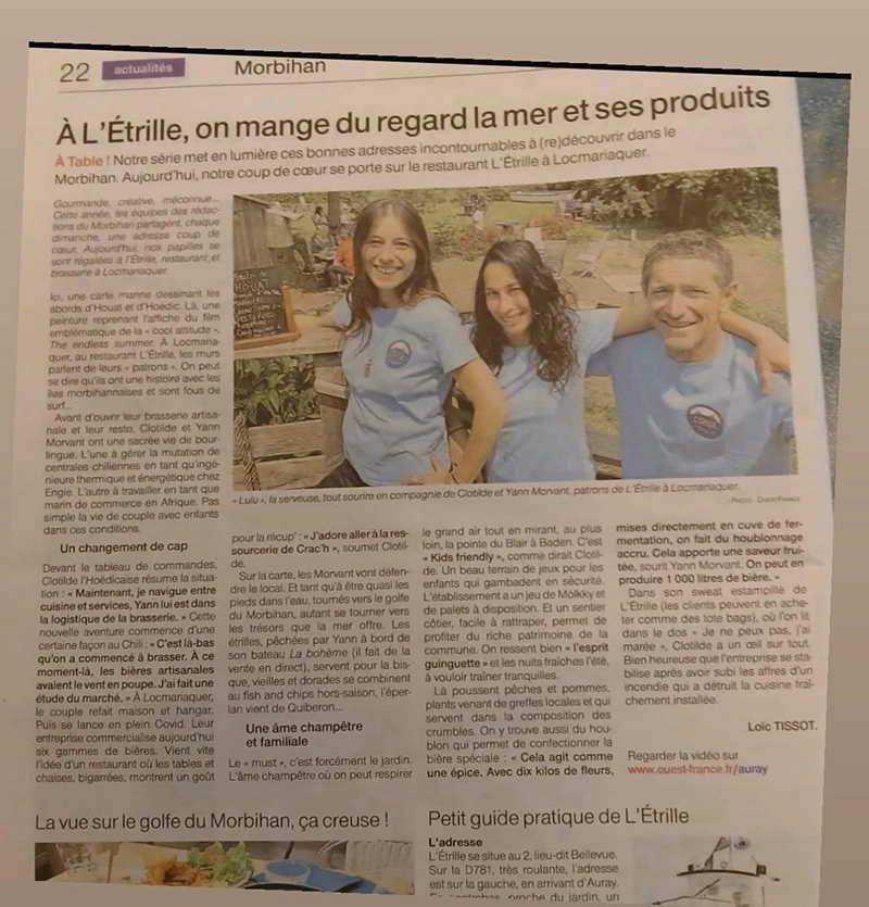 Fondée en 2020 par la famille Morvant, Brasserie Étrille assure la production locale et la vente directe ou à emporter de bières artisanales, brassées sur place : Blonde, Blanche, Ambrée IPA, Triple ambrée et Triple IPA